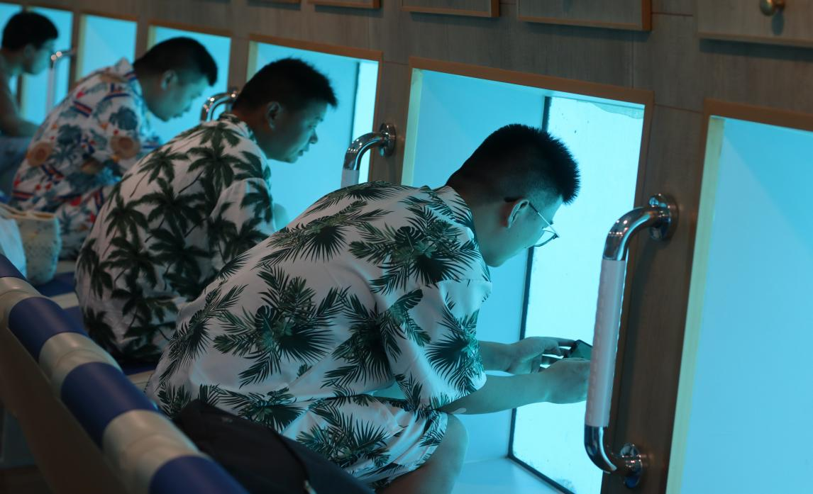 在這一天,我們玩的酣暢淋漓,一時分不清海水與汗水,熱烈的陽光照耀著,讓我們都睜不開眼,大家嬉笑打鬧,在蜈支洲島留下屬于我們的印記。